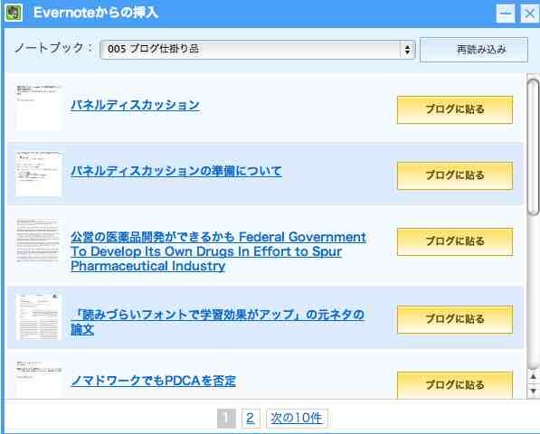 2011-06-02 Evernoteのノートをライブドアブログに取り込める新機能が発表に Evernote挿入機能のお知らせ - Blogger Alliance お知らせブログ こんなふうに画像取り込み済みノートをつくっておいて 「ブログに貼る」ボタンをおせばOK。楽チンだ Created with Skitch - http://skitch.com